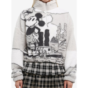 LSJ-collector Disney Steamboat Willie Mickey Mouse Sherpa Girls Crop Pull - Import Décembre 2025